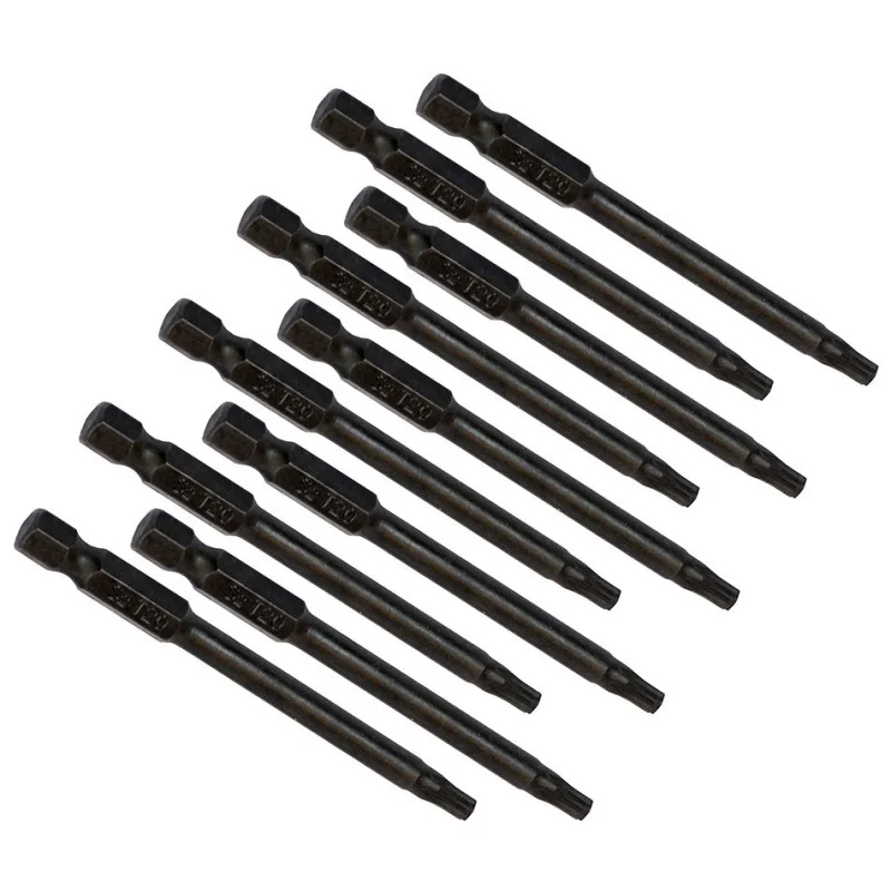 Set van 10 magnetische torx bits T 20 van gehard gereedschapsstaal - 1/4 “- lengte 75 mm.