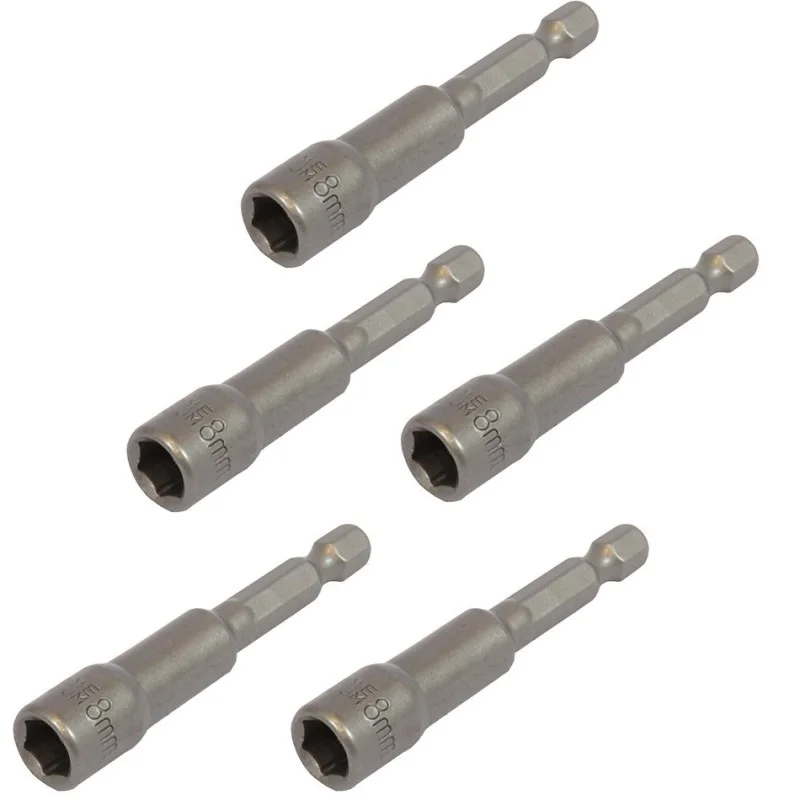 Set van 5 dop bit adapters 1/4" sleutelwijdte 8 mm. lengte 65 mm. - magnetische adapter voor boormachine