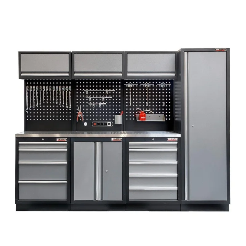 Complete werkplaatsinrichting met matzwart gereedschapsbord bestaande uit: