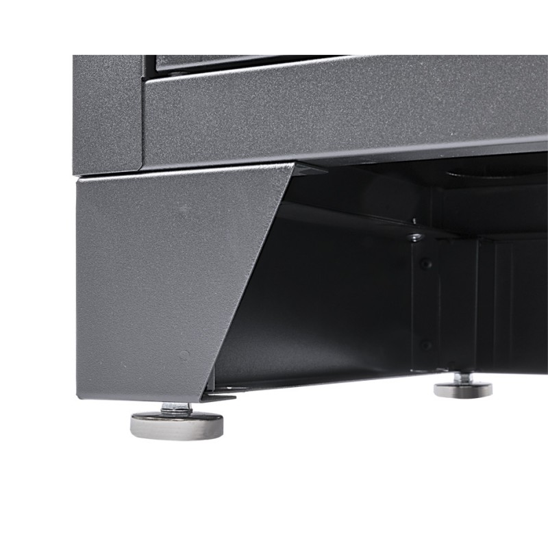 1 x Chique werkplaatskast PP-T 2886 met 1 brede lade, 6 lades van 56,5 cm. breed + 1 hoge schuifla met kunststof afvalbak en 1 schuiflade met 18 kunststof magazijnbakjes. Ook deze gereedschapskast wordt geleverd met 4 verstelbare pootjes in het basisframe waarmee oneffenheden in de vloer kunnen worden opgevangen.