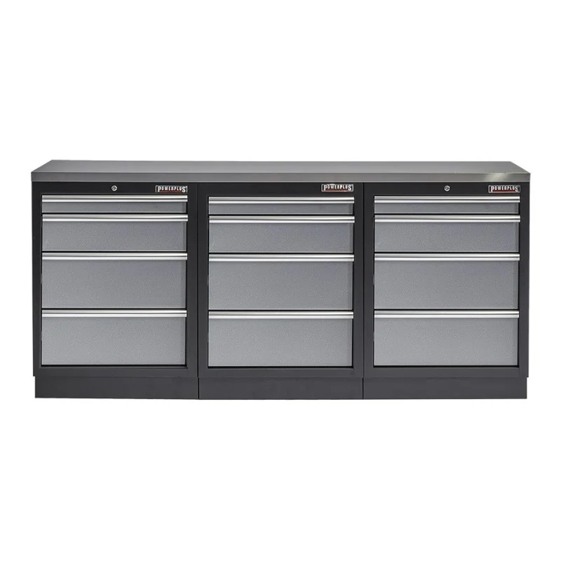 Werkbank set met MDF werkblad met RVS plaat omkleed - 12 laden - 204 x 46 x 94,6 cm. Werkplaatsinrichting