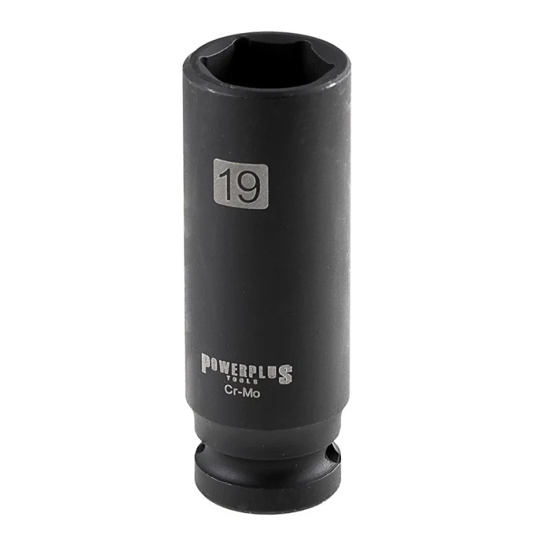 Professionele lange krachtdop 19 mm. - slagmoerdop - impactdop 1/2" x 19 mm.