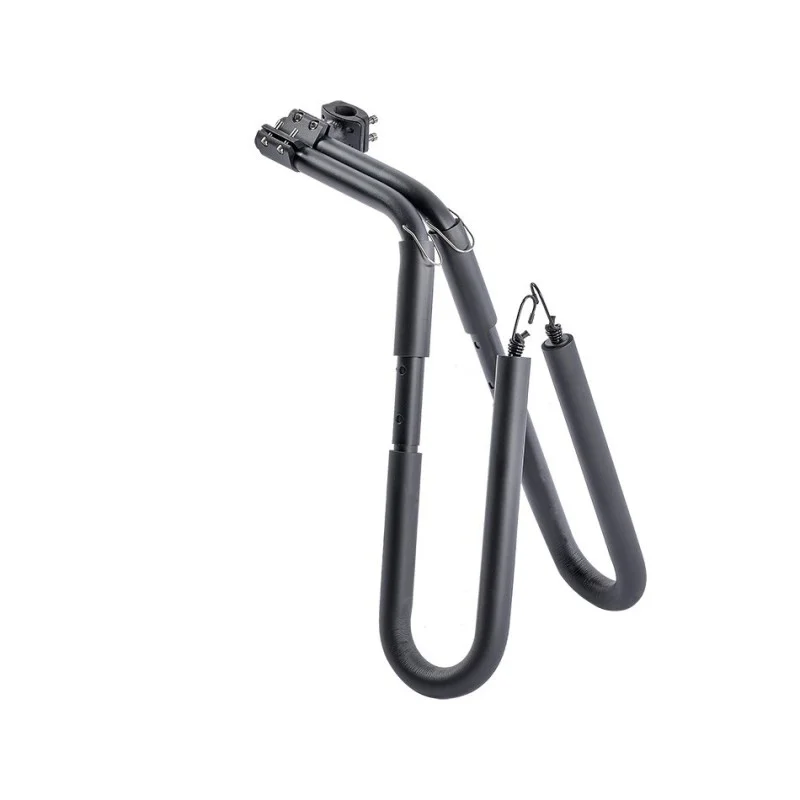 Uw surfboard, snowboard of ander lang voorwerp vervoert u in de toekomst emissievrij met deze lichtgewicht aluminium transportbeugels voor de fiets. Dit roestvrije product is eenvoudig te monteren aan de zadelpen met de bijgeleverde schroeven. De breedte van de draagarmen is instelbaar en door middel van een elastiek met haken is de surfplank, of ander lang voorwerp, eenvoudig vast te zetten.