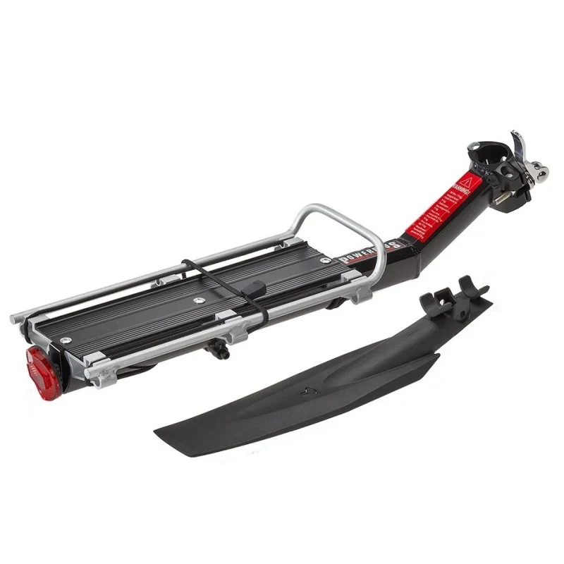 Deze bagagedrager voor de mountainbike of racefiets is gemakkelijk en snel te monteren. Dit product wordt geleverd inclusief een geïntegreerde bagagebinder, een reflector en kunststof spatbord.