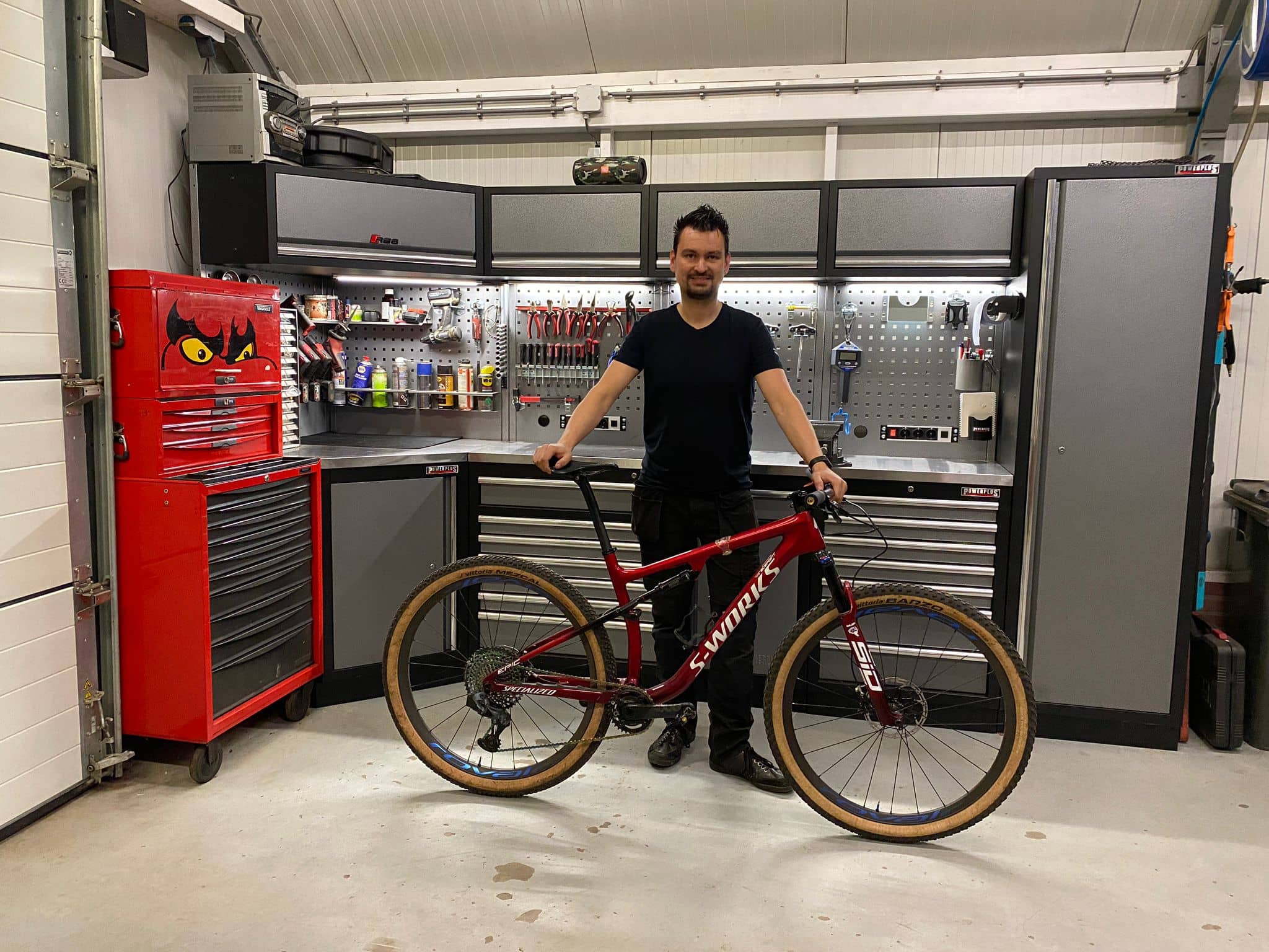 Kijk binnen in de garage van Huub uit Drachten. Hier heeft hij een efficiënte en overzichtelijke klusplek gerealiseerd met de werkplaatsinrichting van Powerplustools.