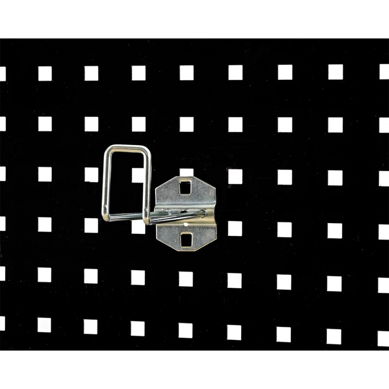 Deze haak is geschikt voor gereedschapsborden met vierkante gaten van 12 x 12 mm. Steek van de gaten: 45 mm. ( hart op hart )