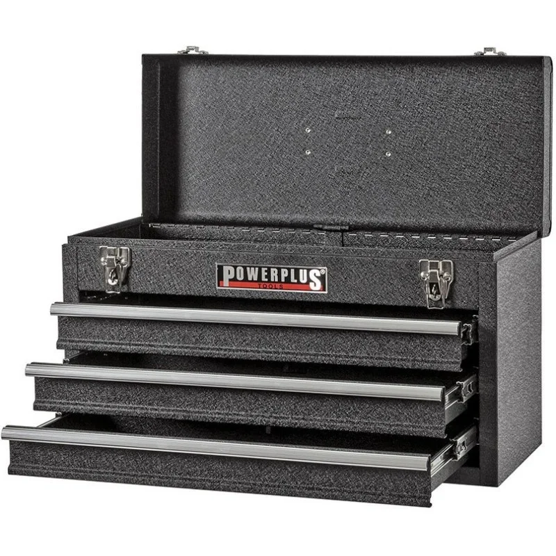 Gereedschapskist matzwart met drie laden voorzien van ladenblokkering
