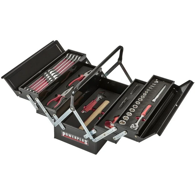 Metalen kist met gereedschap - uitklapbaar - 64 gereedschappen in foam inleg