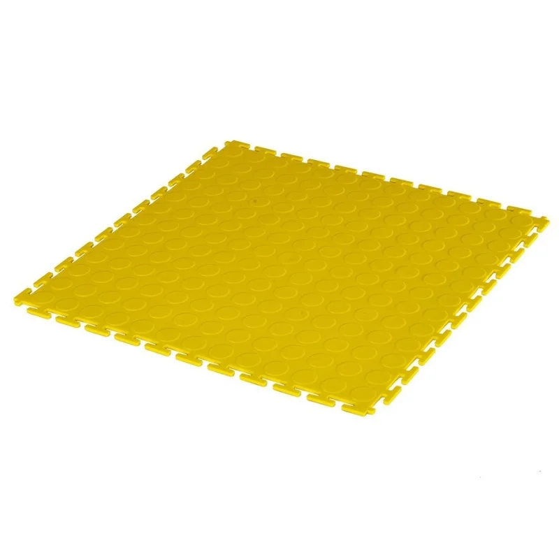 PVC kliktegel geel 500 x 500 x 6 mm. - Industriële werkplaatstegel met ronde noppen