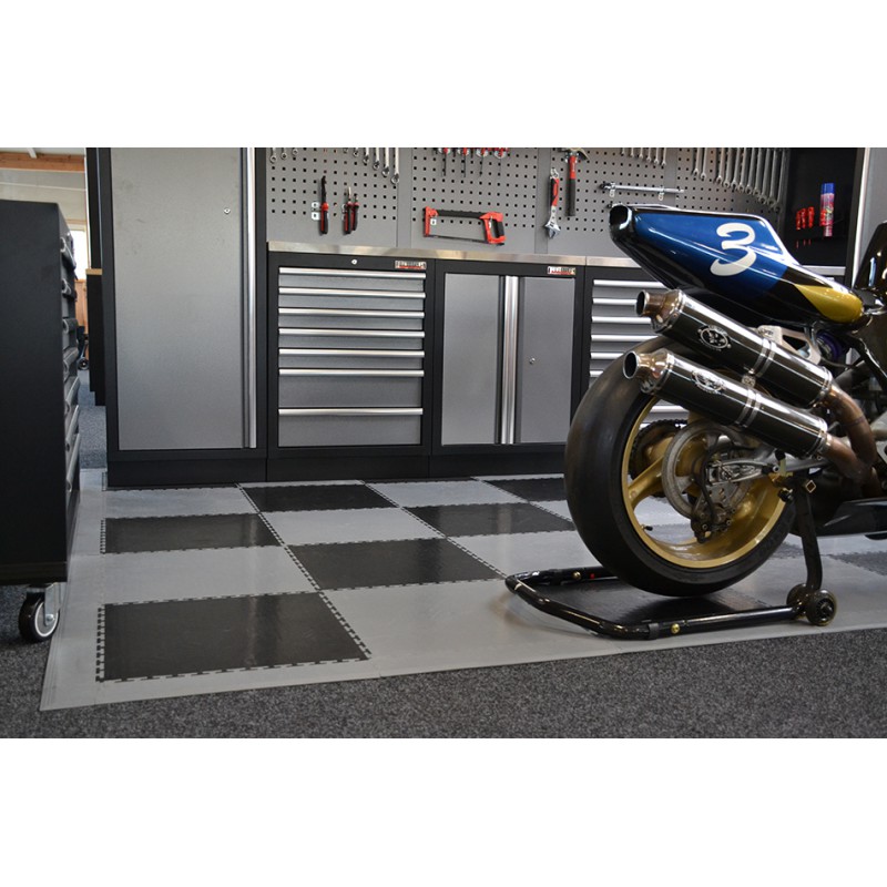 Flexibele supersterke kunststof vloertegel voor industrieel gebruik. Deze kunststof klikmatten zijn voorzien van een anti slip profiel, zijn eenvoudig te leggen en geschikt voor nagenoeg iedere ondergrond zoals beton, tapijt, hout of een tegel- klinker -vloer. De diverse kleuren zijn vrij te combineren en diverse bijpassende oprijranden en hoekstukken...
