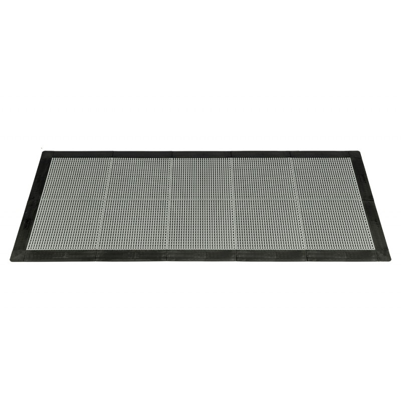 Dit type mat is ook geschikt voor gebruik in natte ruimtes en is leverbaar in de kleuren zwart en grijs. De bijpassende oprijranden en hoekstukjes leveren we in de kleuren zwart, grijs, geel en rood.