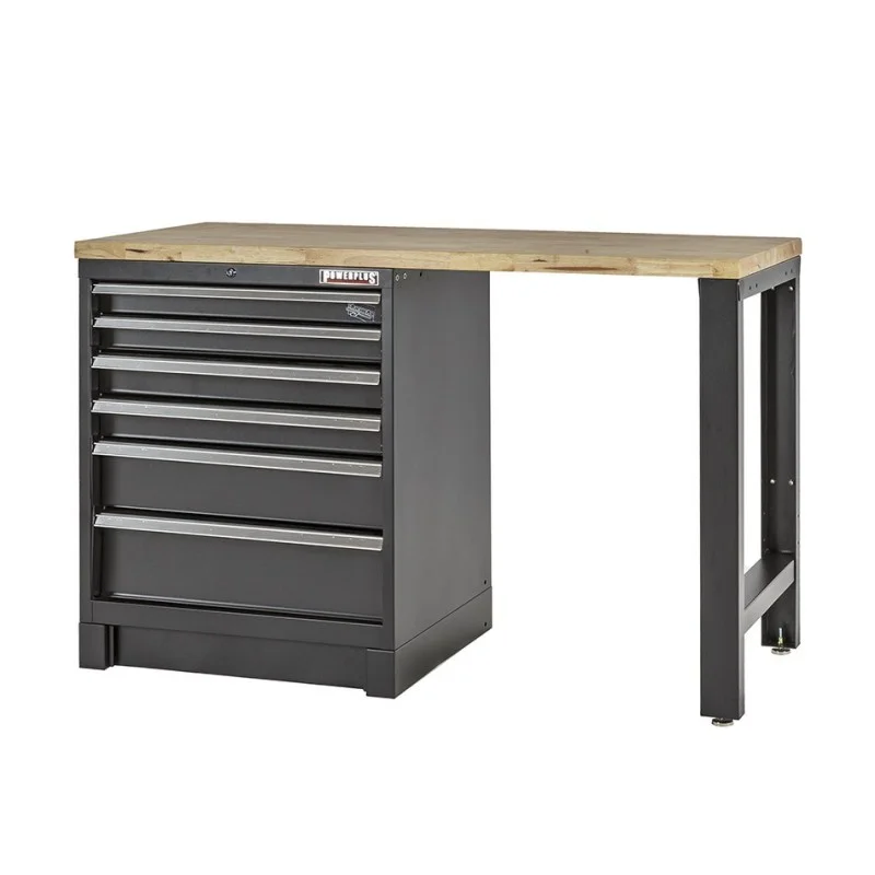 Heavy Duty werkbank met hardhouten werkblad en laden blok zwart - 144 x 60 x 94 cm