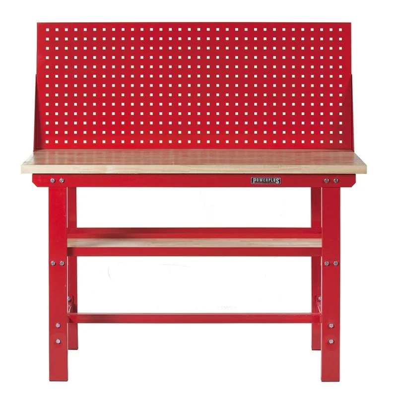 Topkwaliteit werkbank van Powerplustools met oerdegelijk ijzeren frame en poten van dikwandig kokerprofiel (80 x 40 mm.) Deze professionele zware werkbank wordt geleverd inclusief een glad gelakt vingerlas verlijmd hardhouten blad van 3,6 cm. dik. Een ideale stalen werkbank voor school, autogarage, werkplaats, particulier. Deze industrieel inzetbare werkbank is verkrijgbaar in de kleuren rood en zwart. De hoogwaardige poedercoating is UV bestendig en het frame wordt samen geschroefd met gegalvaniseerde bouten en moeren (boutkwaliteit 4.8 )