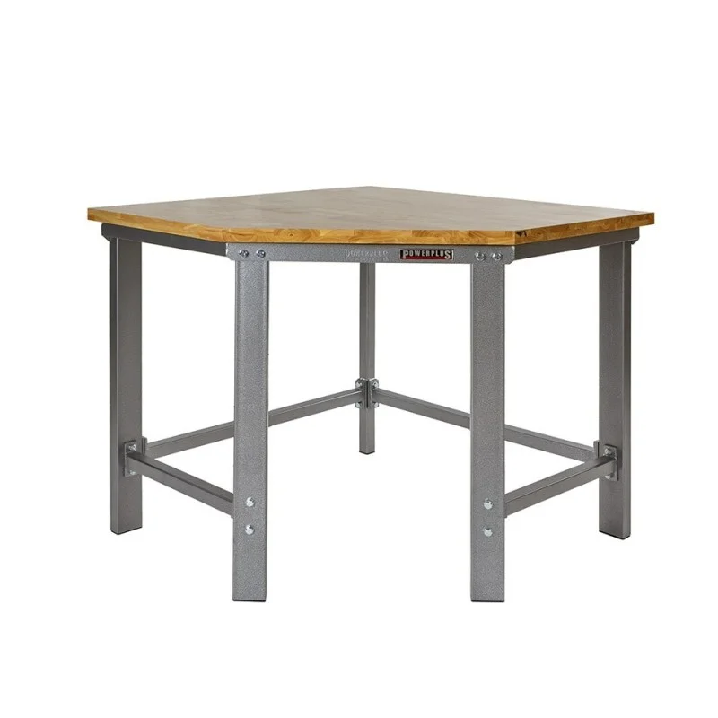 Topkwaliteit werkbank hoekopstelling van Powerplustools met oerdegelijk ijzeren frame en poten van dikwandig kokerprofiel (80 x 40 mm.) Deze professionele zware werkbank wordt geleverd inclusief een glad gelakt vingerlas verlijmd hardhouten blad van 3,5 cm. dik. Een ideale stalen werkbank voor school, autogarage, werkplaats, particulier. Deze industrieel inzetbare werkbank hoekopstelling is verkrijgbaar in de kleuren hamerslag grijs en glanzend zwart en is zowel aan de linker als de rechterkant uit te breiden met werkbanken in lengtes van 100 - 120 - 150 en 200 cm. De hoogwaardige poedercoating is UV bestendig en het frame wordt samen geschroefd met gegalvaniseerde bouten en moeren (boutkwaliteit 4.8 )