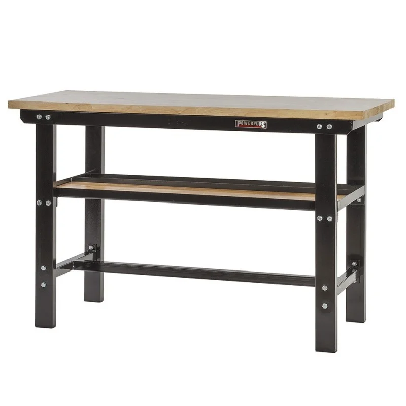 Topkwaliteit werkbank van Powerplustools met oerdegelijk ijzeren frame en poten van dikwandig kokerprofiel (80 x 40 mm.) Deze professionele zware werkbank wordt geleverd inclusief een glad gelakt vingerlas verlijmd hardhouten blad van 3,6 cm. dik. Een ideale stalen werkbank voor school, autogarage, werkplaats, particulier. Deze industrieel inzetbare werkbank is verkrijgbaar in de kleuren rood en zwart. De hoogwaardige poedercoating is UV bestendig en het frame wordt samen geschroefd met gegalvaniseerde bouten en moeren (boutkwaliteit 4.8 )