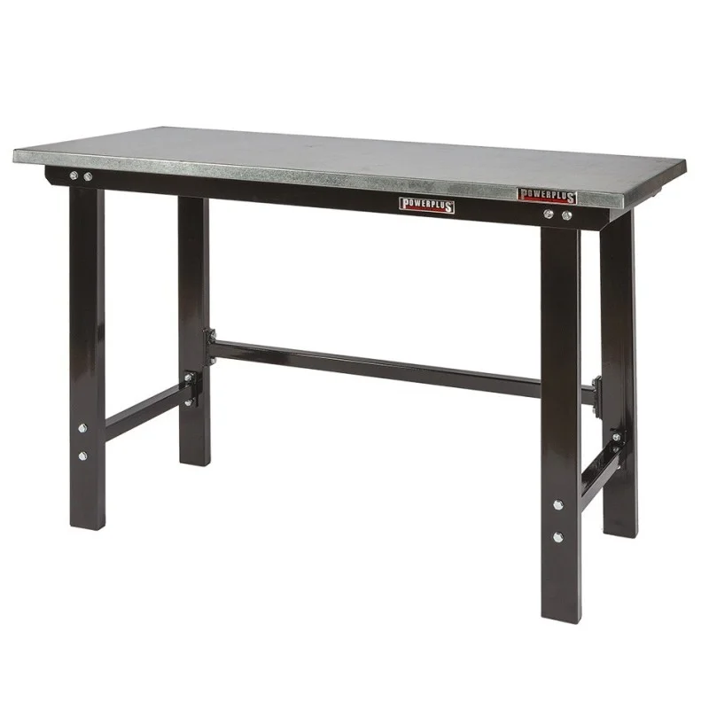Topkwaliteit werkbank van Powerplustools met oerdegelijk ijzeren frame en poten van dikwandig kokerprofiel (80 x 40 mm.) Deze professionele zware werkbank wordt geleverd inclusief een geperst houten blad met daaromheen een 1,5 mm. dikke metalen plaat. Een ideale stalen werkbank voor school, autogarage, werkplaats, particulier. Deze industrieel inzetbare werkbank is verkrijgbaar in de kleuren rood en zwart. De hoogwaardige poedercoating is UV bestendig en het frame wordt samen geschroefd met gegalvaniseerde bouten en moeren (boutkwaliteit 4.8 )