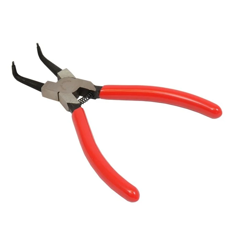Circliptang, seegerringtang, borgveertang met gebogen haakse bek voor binnenringen.