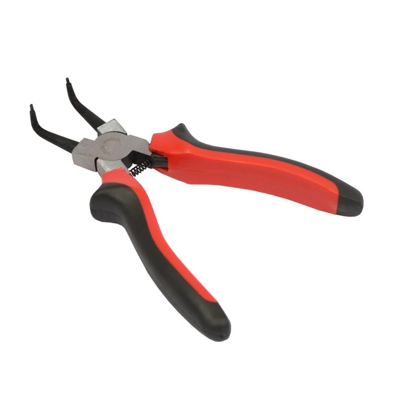 Circliptang, seegerringtang, borgveertang met gebogen haakse bek voor binnenringen.