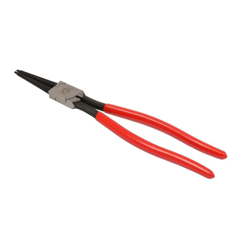 Extra lange circliptang, seegerringtang, borgveertang met rechte bek voor binnenringen.