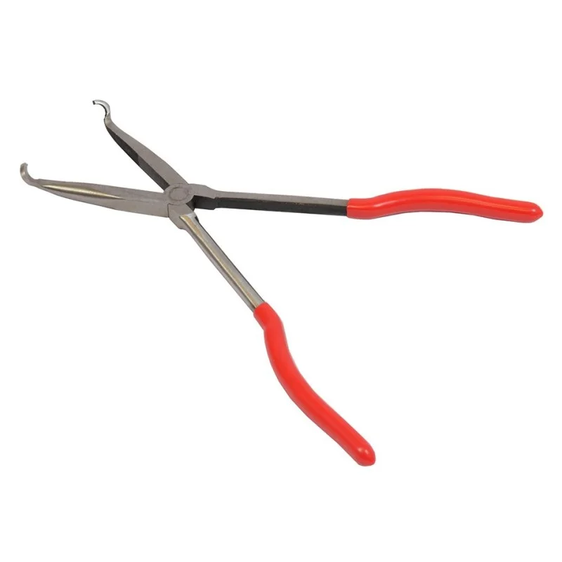Extra lange platte rondbektang 45 graden gebogen, lange bekken, geschikt voor het grijpen van bougiestekkers en andere ronde delen.