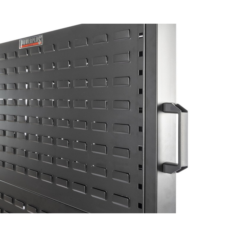 Standaard is dit verrijdbare magazijnrek voorzien van 6 metalen platen van 90 x 45 cm. waaraan u de bakjes kunt hangen. Optioneel zijn ook gereedschapsborden van 90 x 45 cm. met vierkante gaten van 12 x 12 mm. leverbaar waardoor u met behulp van een breed assortiment uit voorraad leverbare haken de trolley om kunt bouwen tot een verrijdbaar gereedschapsbord.