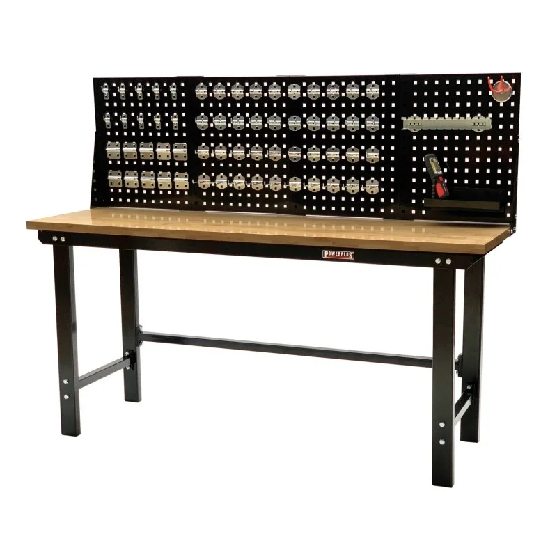 De ideale werkbankset incl. achterwand voor gereedschap en bijpassende 60-delige haken set voor een voordeelprijs.