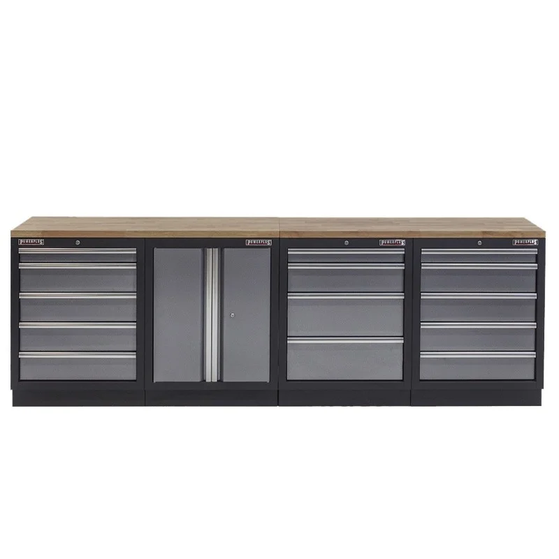 Werkbank set met hardhouten werkblad, gereedschapskast - 14 laden - 272 x 46 x 94,5 cm
