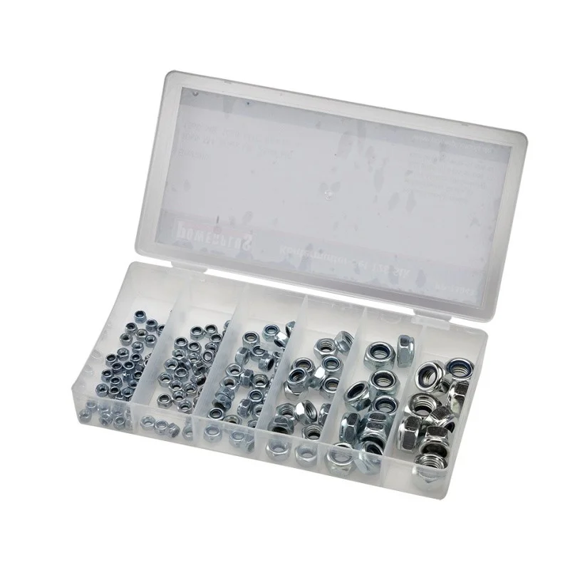 Assortimentsdoos met 128 verzinkte zeskant borgmoeren van € 6,95 voor € 4,95.
